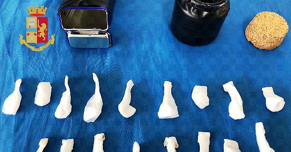 I poliziotti hanno bloccato lo spacciatore ed effettuato un controllo nella strada da cui poco prima era uscito dove, in un tombino, hanno rinvenuto un contenitore calamitato contenente 14 involucri con circa 5,2 grammi di cocaina mentre, in un anfratto, un barattolo di vetro con altri tre involucri contenenti circa un grammo della stessa sostanza.