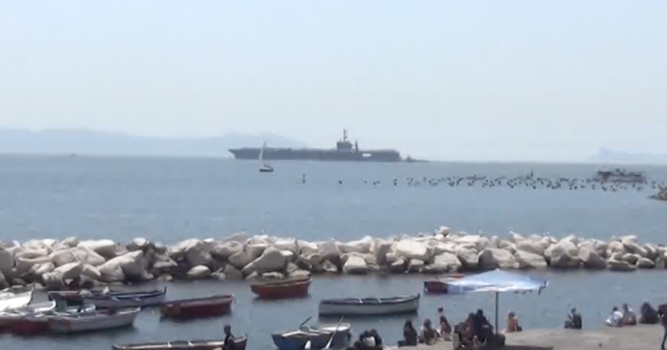 Tanta curiosità a Napoli per la portaerei statunitense classe Nimitz USS Harry S. Truman (CVN 75), che dall'alba di questa mattina è nel golfo. E sul lungomare in tanti si fermano per una foto. Una portaerei della Marina statunitense mancava da Napoli da sei anni.