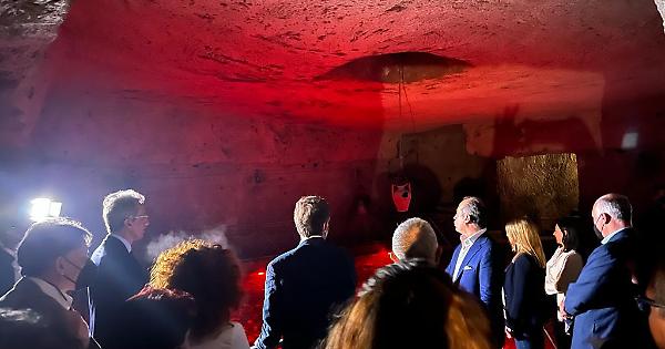 «È un luogo unico al mondo che unisce storia e innovazione. È stata una scoperta, ne avevo sentito parlare ma non l'avevo mai visitata. È bellissima». Così il ministro della Cultura, Dario Franceschini, al termine della visita alla Galleria Borbonica di Napoli. Ad accompagnarlo nel percorso, il sindaco di Napoli, Gaetano Manfredi, e l'assessore al Turismo, Teresa Armato. Una visita breve ma che ha toccato alcuni dei punti principali della Galleria la cui storia, i cui tesori e le innovazioni tecnologiche sono state illustrate al ministro da Gianluca Minin, geologo, a cui si deve la realizzazione della Galleria e la gestione.