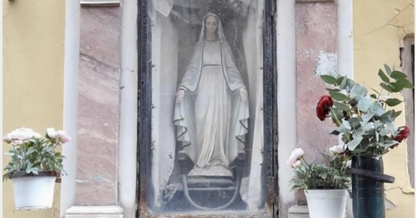 NAPOLI. Dopo il furto della Madonnina a Posillipo, un residente acquista una nuova statuina da inserire nella teca.