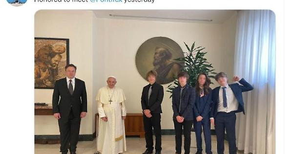 Elon Musk ha incontrato ieri Papa Francesco. A testimonianza della visita a Santa Marta, la foto pubblicata su Twitter e un breve commento ad accompagnarla. "Onorato di aver incontrato il Papa ieri", scrive il numero uno di Tesla sul social, taggando il profilo in lingua inglese del Pontefice. Ad accompagnare l'imprenditore americano, quattro dei suoi sette figli.