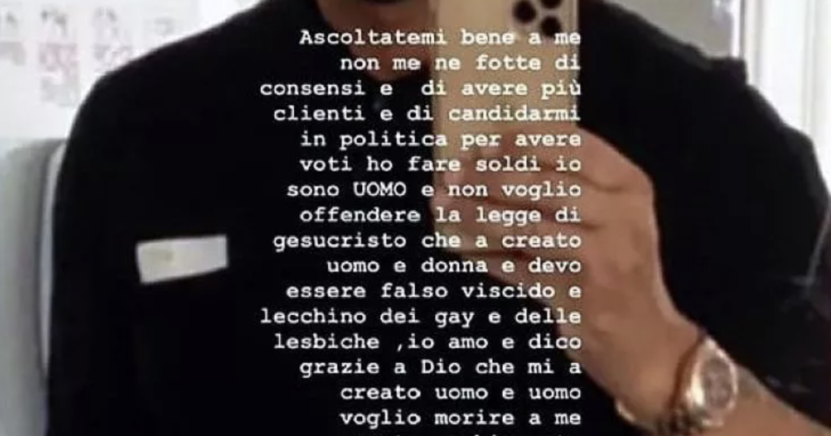Sulla pagina Instagram della pizzeria di via Tribunali, tra le più famose della città, il titolare Massimiliano Di Caprio ha pubblicato un post nel quale definisce gli omosessuali «pervertiti infelici» che vogliono «far sentire gli altri sbagliati e torturare i bambini che vi guardano in tv e per strada, destabilizzandoli», il tutto manifestando disinteresse per eventuali reazioni contrarie: «Non me ne fotte di consensi e di avere più clienti e di candidarmi in politica - ha scritto Di Caprio - io sono uomo e non voglio offendere la legge di Gesù Cristo che ha creato uomo e donna. Dio mi ha creato uomo e uomo voglio morire, non condivido questo degrado che voi umani state accettando».