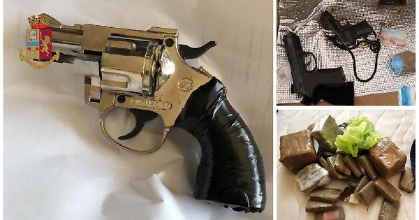 NAPOLI. Ieri pomeriggio gli agenti della Squadra Mobile e del Commissariato Bagnoli hanno effettuato un controllo presso uno stabile di via Cupa Capano dove, all’interno di un appartamento disabitato, hanno rinvenuto una pistola Beretta con matricola abrasa cal.7,65, una pistola replica marca “Bruni” cal.9 e 51 panetti di hashish del peso di circa 4,3 kg.