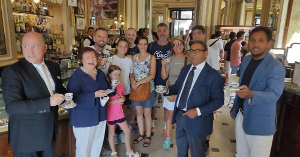Arrivano da Cortina e Vicenza i turisti che stamattina al Gambrinus hanno "brindato" con una tazzina di caffè in occasione del Ferragosto con i dipendenti, i titolari del caffè storico e l'assessore al Turismo ee Attività produttive del Comune di Napoli Teresa Armato. Poco dopo la Armato si è intrattenuta all'infopoint di piazza Trieste e Trento con alcuni visitatori e con il personale in servizio al punto informativo. Informazioni sui trasporti e sui monumenti da visitare oltre che su spettacoli e viste guidate organizzate nell'ambito di Vedi Napoli e poi torni e del programma Restate a Napoli le richieste maggiori da parte dei turisti.