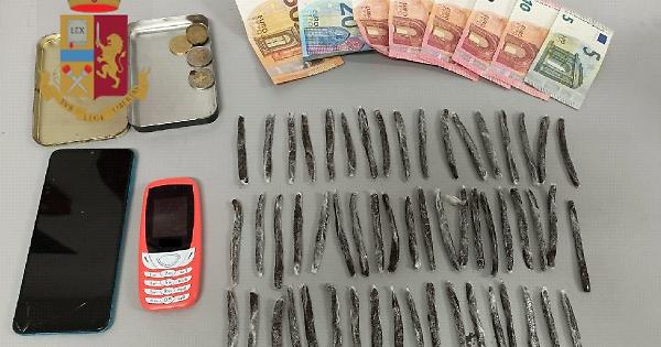 I poliziotti hanno raggiunto e bloccato lo spacciatore trovandolo in possesso di 55 stecchette di hashish del peso di circa 102,2 grammi, 2 cellulari e circa 130 euro, mentre la donna è stata trovata in possesso di una stecchetta della stessa sostanza del peso di circa 1,3 grammi.