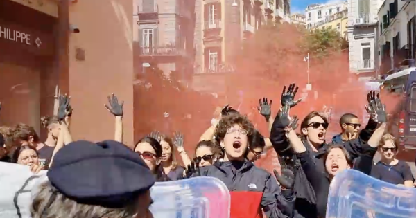 NAPOLI. Un gruppo di giovani sta protestando nei pressi di piazza dei Martiri, a Napoli, dove a breve è atteso l'arrivo del leader di Fratelli d'Italia Giorgia Meloni per un incontro all'Unione industriali. I ragazzi, circa una ventina, stanno intonando cori e slogan contro l'alternanza scuola-lavoro e il coro «Meloni via da Napoli». Acceso anche un fumogeno rosso.
