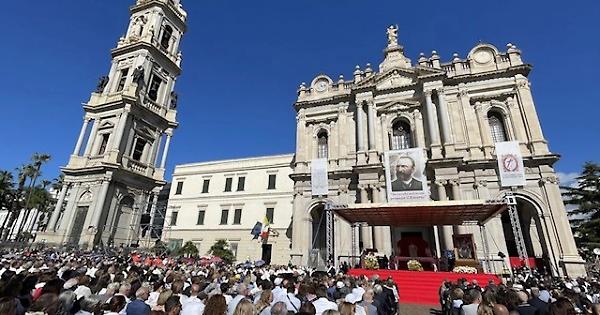«Confidiamo nella misericordia di Dio, che può cambiare i cuori, e nell’intercessione materna della Regina della pace, nel momento in cui si eleva la Supplica alla Madonna del Rosario di Pompei, spiritualmente uniti ai fedeli radunati presso il suo Santuario e in tante parti del mondo». Sono le parole che Papa Francesco ha pronunciato questa mattina, in piazza San Pietro, durante l’Angelus, proprio nel momento in cui, sul sagrato del Santuario di Pompei, si elevava la Supplica del 2 ottobre, prima domenica del mese del Rosario, uno dei due giorni dell’anno (l’altro è l’8 maggio, ndr) nei quali la preghiera composta dal Beato Bartolo Longo è elevata solennemente. La Supplica è stata presieduta dal Cardinale Lazzaro You Heung-sik, Prefetto del Dicastero per il Clero, e concelebrata dall’Arcivescovo di Pompei, Monsignor Tommaso Caputo; da Monsignor Gennaro Pascarella, Vescovo di Pozzuoli e di Ischia con il Vescovo ausiliare Monsignor Carlo Villano; dall’Arcivescovo Monsignor Luigi Travaglino, Nunzio apostolico emerito; e da tutto il clero della Città mariana.