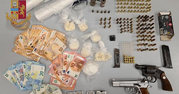 Gli operatori sono intervenuti e lo hanno identificato rinvenendo nell’abitazione 4 bilancini di precisione, diverso materiale per il confezionamento della droga, un cellulare, due chiavi di un’autovettura e 3435 euro; successivamente, hanno controllato anche l’auto dove hanno trovato 6 buste con circa 189 grammi di crack, un’altra busta contenente circa 63 grammi di cocaina, 145 cartucce di vario calibro, altre 5 cartucce a salve cal.357 e 2 pistole, di cui una con matricola abrasa e l’altra risultata smarrita nel 2017.