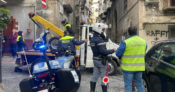 NAPOLI. Stamattina i Nibbio dell’Ufficio Prevenzione Generale e personale della Polizia Municipale Nucleo Veicoli Abbandonati hanno effettuato controlli nelle vie Monte Poveri Vergognosi, Speranzella, Pergolella Morbillo, Simonelli e Scura, in vico Lungo Teatro Nuovo, vicoletto I Consiglio, vico Soccorso, vico Campanile al Consiglio, vico Trucco, vico Pergolella alla Carità, vico Grotta Mastrodatti, vico Paradiso e gradini Paradiso.