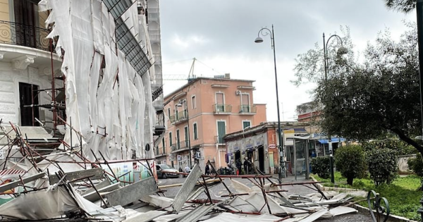Il maltempo che si è abbattuto su Napoli ha fatto crollare parte di un'impalcatura montata sulla facciata di un palazzo di via Aniello Falcone, all'altezza dei giardinetti Nino Taranto. Alcuni residenti intorno alle 11,45, vista l'instabilità della struttura, hanno allertato i vigili del fuoco che sarebbero arrivati dopo che pezzi dell'impalcatura hanno invaso la sede stradale.