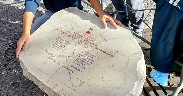 La targa è stata completamente ripulita. Su indicazione del sindaco Gaetano Manfredi, inoltre, dalla scorsa settimana gli addetti della partecipata comunale stanno intervenendo lungo l'emiciclo e le sedute di piazza Borsa, completamente vandalizzate da scritte di ogni genere. L'intervento è risultato estremamente complesso e richiede tempo sia per le dimensioni delle scritte che per il particolare materiale (pietra marmorea) che ricopre l'emiciclo della piazza.