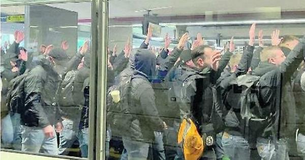Il lancio di bottiglie da parte di alcuni ultras dell'Eintracht Francoforte contro un bar a piazza Bellini, in quel momento chiuso, non è stato l'unico momento di tensione registrato ieri sera a Napoli, dove diverse centinaia di tifosi tedeschi sono giunti nonostante il divieto di vendita dei biglietti per la partita di Champions League di stasera disposto dalla Prefettura per i residenti a Francoforte. Durante il trasferimento dei tifosi tedeschi dalla stazione di Napoli Centrale agli alberghi nei quali risiedono, effettuato ieri sera a bordo di bus messi a disposizione da Anm e scortati dalle forze dell'ordine, lungo via Amerigo Vespucci un gruppo di persone a volto coperto ha lanciato fumogeni e altri oggetti contro i bus, che comunque non hanno arrestato la loro marcia. L'azione è stata ripresa in un video da un cittadino, poi pubblicato e diffuso sui social network. Anche in questa circostanza, come in quella di piazza Bellini, non si sono registrati feriti.