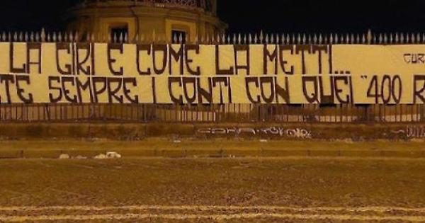 In totale gli striscioni esposti in città sono almeno quattro. Alcuni sono firmati “Curva A", altri sono anonimi.