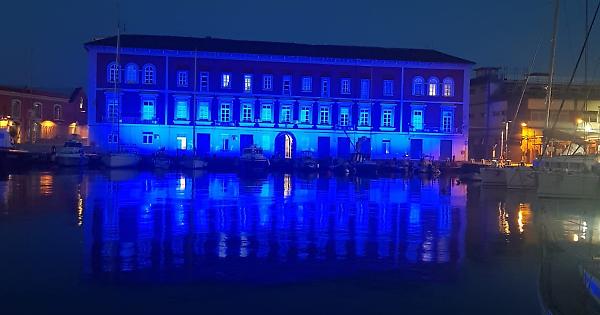 Anche la Marina Militare ha aderito alla campagna "M'Illumino d'azzurro" lanciata dal sindaco di Napoli, Gaetano Manfredi, illuminando la sede di Via Acton.
