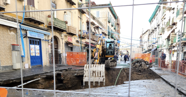 Alla base del cedimento stradale un collasso della fogna superficiale ed un danno al collettore profondo - che l'assessore alle Infrastrutture del Comune di Napoli, Edoardo Cosenza, in un post su Facebook definisce «serio» - probabilmente a causa della pioggia che per tutta la notte si è abbattuta su Napoli.
