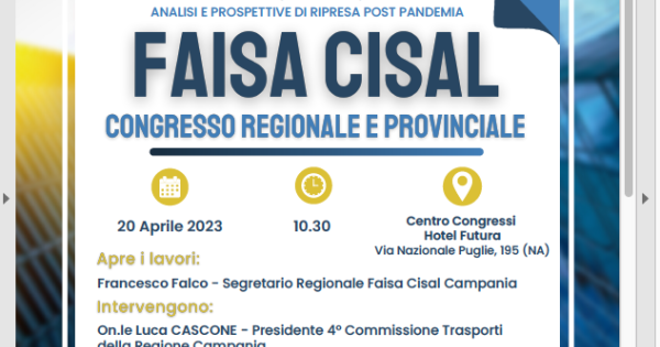 NAPOLI. La Faisa (Federazione autonoma sindacale degli autoferrotranvieri) aderente alla Cisal è a congresso regionale e provinciale oggi a Napoli, all’ Hotel Futura, (via Nazionale delle Puglie 195).