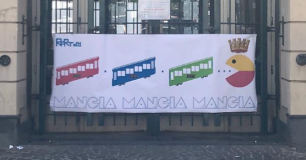 Stamani sui cancelli chiusi della stazione superiore della funicolare di Chiaia ha fatto scalpore la presenza dell'ennesima protesta per la chiusura dell'importante impianto a fune. Difatti è comparso uno striscione, lungo tutto l'ingresso, con un disegno che emula il vecchio videogioco Pac-Man, dove la creatura sferica invece che gialla ha i colori giallo e rosso, con la corona, del Comune di Napoli mentre al posto dei puntini sul percorso ci sono tre vagoni della funicolare con all'interno la scritta "Anm" e nella parte sottostante la scritta "mangia". Lo striscione è anonimo riportando solo sulla sinistra la scritta RaRt 081. A segnalare la nuova tappa di quest'eterna telenovela, con il nuovo evento scaturito dal lungo fermo dell'impianto è Gennaro Capodanno, ingegnere, presidente del Comitato Valori collinari, già presidente della Circoscrizione Vomero, da lustri impegnato a segnalare le vicende e purtroppo le continue problematiche che da tempo stanno caratterizzando la vita delle quattro funicolari cittadine, fondatore sul social network Facebook del gruppo "Napoli: gli "orfani" della funicolare di Chiaia".