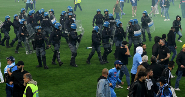 Il caso più grave riguarda una persona che ha riportato una frattura esposta a una gamba durante l'invasione di campo, perché saltando è caduto. La persona è stata soccorsa dal direttore della Sores e dal coordinatore infermieristico della Sores, entrambi sul posto.