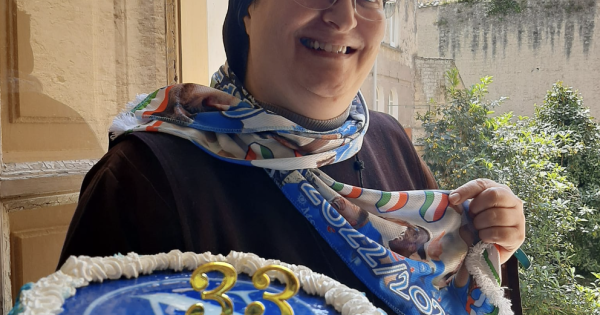 «Oggi 5 maggio, - fa sapere madre Lupoli via social con tanto di torta azzurra e di foulard scudettato - festeggio 33 anni di entrata in questo monastero di Cappuccine di Napoli dette le 33. Quanta vita intensa, impegnata e dolce è trascorsa tra queste sante mura. E oggi c'è grande gioia, felicità e ringraziamento al Signore per il grande regalo fatto a Napoli». Il terzo scudetto. Appunto dopo 33 anni.