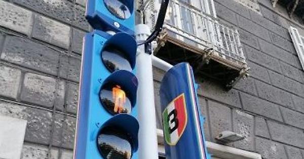 Un semaforo speciale, tutto azzurro con tanto di scudetto tricolore e il numero 3. A Napoli anche la segnaletica stradale celebra il successo della squadra di Luciano Spalletti, che ieri sera pareggiando a Udine ha conquistato il terzo scudetto della storia del club azzurro. E proprio il colore societario, ormai indissolubilmente associato alla città, è diventato quello di un semaforo cittadino, quello di via San Carlo a metà strada tra piazza Trieste e Trento e il Teatro San Carlo da un lato, piazza Municipio e il Maschio Angioino dall'altro. Il semaforo speciale è stato installato dall'impresa "La Semaforica srl", affidataria del Comune di Napoli, che ha realizzato e donato le componenti del semaforo.