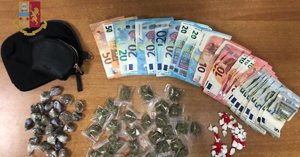 NAPOLI. Ieri sera gli agenti del Commissariato Vasto-Arenaccia, durante un servizio di contrasto allo spaccio di sostanze stupefacenti, hanno controllato in via Parma angolo via Pavia un uomo a bordo di uno scooter trovandolo in possesso di 27 involucri contenenti circa 64 grammi di hashish, 32 dosi contenenti circa 8 grammi di cocaina, 27 involucri contenenti circa 34 grammi di marijuana e 370 euro.