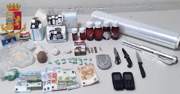 I poliziotti hanno raggiunto e bloccato i due spacciatori trovandoli in possesso di una busta e di 16 involucri contenenti circa 95 grammi di eroina, 4 stecche di hashish del peso complessivo di circa 10 grammi, due flaconi di GHB, sostanza comunemente conosciuta come “droga dello stupro”, e 170 euro; inoltre, hanno rinvenuto nell’abitazione altri 43 flaconi di GHB, 3 buste contenenti circa 58 grammi di eroina, un involucro contenente circa 3 grammi di cocaina, due coltelli, un taglierino, un bilancino di precisione, due cellulari e diverso materiale per il confezionamento della droga.