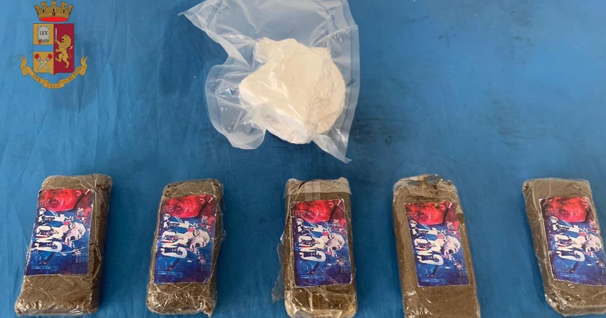 Per tale motivo, i poliziotti hanno effettuato un controllo presso il suo appartamento ed in effetti l’intuito investigativo ha trovato positivo riscontro poiché hanno rinvenuto, ben occultati, un involucro contenente circa 170 grammi di cocaina e 5 panetti di hashish per un peso complessivo pari a circa 500 grammi.
