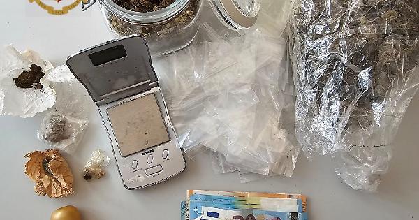 I poliziotti hanno esteso l’attività di controllo presso la sua abitazione ed in effetti l’intuito investigativo ha trovato positivo riscontro poiché, con il supporto di un’Unità Cinofila, hanno rinvenuto e sequestrato una busta contenente 195 grammi circa di marijuana, altri 95 grammi della stessa sostanza contenuta in un barattolo ed altri piccoli contenitori e bustine nonché diverso materiale per il confezionamento della droga.