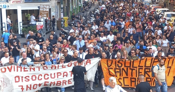 Gruppi di disoccupati aderenti ai movimenti “7 novembre" e “Cantiere Scampia" sono saliti sui balconi al primo piano della sede del Consiglio comunale in via Verdi a Napoli ed hanno occupato le sedi dei capigruppo consiliari dei partiti di maggioranza del governo.