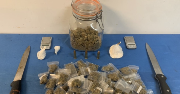 L’intuito investigativo ha trovato positivo riscontro poiché, con non poche difficoltà, una volta giunti all’interno dell’appartamento, i poliziotti hanno sorpreso e bloccato sette uomini seduti al tavolo della cucina sul quale hanno rinvenuto 1 panetto di hashish del peso di 24 grammi circa, 4 involucri della stessa sostanza del peso di 13 grammi circa, 2 involucri di cocaina del peso di 31 grammi circa, un involucro di marijuana del peso di 98 grammi circa, 57 dosi della stessa sostanza del peso di 69 grammi circa, 85 euro, diverso materiale per il confezionamento della droga, 2 bilancini di precisione, un paio di forbici e 2 coltelli con la lama intrisa di sostanza stupefacente; ancora, 3 cartucce calibro 357 magnum e 2 macchine per il sottovuoto.