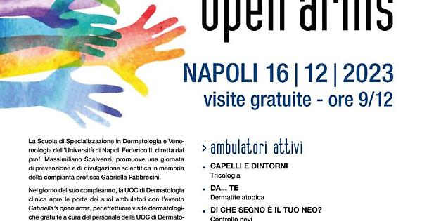 Sabato 16 dicembre 2023, in occasione del compleanno dell’amata Prof.ssa Gabriella Fabbrocini, la UOC di Dermatologia Clinica della Federico II apre le porte per una giornata di consulenze gratuite: sei ambulatori dedicati alle patologie dermatologiche più diffuse ospiteranno oltre 180 pazienti. “La Prof.ssa Fabbrocini è stata una fervida sostenitrice della medicina sociale, promuovendo durante tutta la sua brillante carriera numerose campagne di screening gratuiti – Spiega il Prof. Cataldo Patruno, Responsabile Scientifico dell’iniziativa – “Gabriella è stata antesignana della Dermatologia sociale e della Terza Missione, cultura da poco diffusa nell’ambiente accademico, sostenendo da sempre la necessità della cura a 360 gradi e dell’accudimento psicofisico del paziente anche in maniera multidisciplinare.” Continua il Prof Massimiliano Scalvenzi, direttore dell’UOC di Dermatologia Clinica -” La Dermatologia federiciana sente il dovere di continuare nei suoi insegnamenti, mettendo la Persona, non il paziente, al centro delle sue attenzioni offrendo con tali campagne la possibilità di essere visitati dall’eccellenza medica, anche e soprattutto per coloro che non sempre possono permetterselo.”