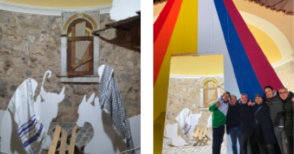 VICO EQUENSE. San Giuseppe è coperto dal tallit, l’ampio mantello tipicamente ebraico, indossato dagli uomini d’Israele in preghiera. La Madonna, invece, veste con la kefiah, la sciarpa indossata solitamente dai palestinesi. Nel Presepe allestito nella parrocchia San Giovanni Evangelista, in località Bonea, a Vico Equense, guidata da don Mario Cavaliere, ci sono i simboli dei due popoli in guerra, in un Natale dove anziché celebrare la venuta del Messia tra gli uomini, si sta assistendo allo scorrere di un fiume di sangue. E, dunque, la “Sacra Famiglia” è stata rappresentata come simbolo e preghiera per la pace in una località della terra dove si sta consumando uno dei più atroci conflitti. «Ci è sembrato quantomai opportuno basare il nostro Natale su alcuni segni che hanno come punto fermo la pace - spiega il parroco don Mario - Insieme ad alcuni adulti, abbiamo quindi pensato anche di addobbare il nostro albero con nastrini che riproducono i colori della bandiera della pace. Alla base dell’abete vi è una Natività, radice di pace». La Vergine Maria e San Giuseppe vestono dunque gli abiti dei popoli protagonisti della tragica guerra, «un piccolo segno che richiama al’arte del dialogo nelle differenze» aggiunge Don Mario. «Il progetto prevede al centro un bambinello ricoperto a sua volta da una “coperta termica” - conclude il parroco - per ricordarci dei tanti immigrati che trovano rifugio nel nostro Paese. L’idea è nata perché i nostri ragazzi sia educati ad accogliere l’altro. Un grazie a chi ha ideato e realizzato tutto questo».