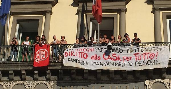 NAPOLI. Un gruppo di attivisti per il diritto alla casa ha fatto irruzione questa mattina in Palazzo San Giacomo, sede del Comune di Napoli, forzando i controlli della Polizia municipale all'ingresso e raggiungendo gli uffici della Ragioneria al primo piano dai quali hanno esposto uno striscione visibile dalla piazza. Un agente della Polizia municipale è rimasto contuso nel parapiglia ed è stato medicato dai sanitari del 118 giunti sul posto con un'ambulanza. Sul posto sono presenti i Vigili del Fuoco e gli agenti della Digos. Nel pomeriggio era previsto un incontro tra esponenti del Comune e una delegazione del movimento a Palazzo San Giacomo. Gli attivisti hanno motivato l'irruzione con la richiesta di «risposte concrete sull'emergenza abitativa, dopo che negli scorsi mesi le vertenze della campagna per l'abitato non hanno avuto risposta».