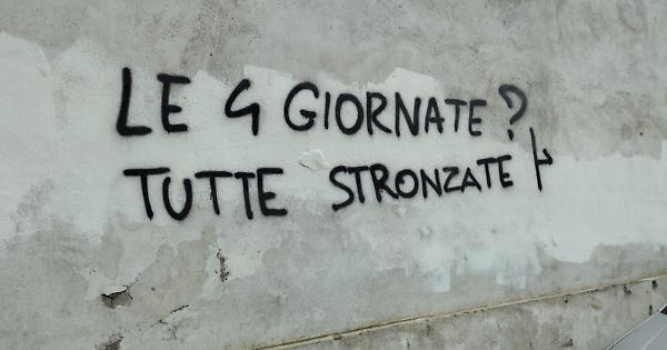 NAPOLI. Nuove scritte discriminatorie sui muri a Napoli. Questa volta a via Foria, nei pressi dell’Orto Botanico. Gli addetti di Napoli Servizi, su indicazione del sindaco di Napoli, Gaetano Manfredi, hanno provveduto a rimuoverle. “Le 4 Giornate? Tutte stronzate” è una di quelle apparse: chiaro il riferimento all’insurrezione popolare, tra il 27 e il 30 settembre 1943, con la quale il capoluogo campano si liberò dall’occupazione delle forze tedesche nel corso della seconda guerra mondiale. Tra le anche scritte rimosse: “Maalox per gli Antifa” e “Casapound”. La scritta oltraggiosa della resistenza napoletana, a dire il vero, è stata cancellata per la seconda volta. Già a novembre, infatti, era stata tolta ed era ricomparsa dopo poche settimane con caratteri ancora più grandi.