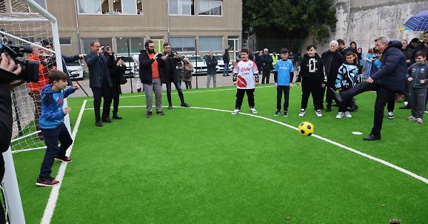 NAPOLI. Un nuovo spazio a disposizione dei ragazzi del rione Amicizia, nella III Municipalità. È stato inaugurato questa mattina il campetto di calcio del plesso “San Francesco” dell’istituto scolastico comprensivo “Radice Sanzio Ammaturo”. Il nuovo impianto è uno degli interventi programmati dal Tavolo per l’Infanzia e l’Adolescenza promosso dal sindaco Gaetano Manfredi, del quale fanno parte il coordinatore Paolo Siani, Gemma Tuccillo e Paolo Lattanzio. Il progetto è stato realizzato grazie ad un atto di mecenatismo dell’associazione Progetto Abbracci Onlus, presieduta da Claudio Zanfagna, che ha stipulato una convenzione con il Comune di Napoli.