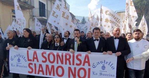 Sono scesi in piazza i lavoratori del Castello delle Cerimonie dopo la confisca della struttura diventata esecutiva in seguito alla sentenza di Cassazione, che ha condannato gli attuali proprietari per lottizzazione abusiva a partire dalla fine degli anni ’70. Oltre 500 persone tra dipendenti, familiari e lavoratori dell’indotto hanno sfilato per le strade di Sant’Antonio Abate, in provincia di Napoli, con partenza dall’Hotel “La Sonrisa" e arrivo davanti al Comune. A sostenere la battaglia dei lavoratori l’attrice Maria Grazia Cucinotta, che questa mattina era all’interno de “La Sonrisa" ma non ha partecipato al corteo. «In un posto così, dove non c’è lavoro, questa è un’oasi nel deserto. Vanno difesi i lavoratori che qui hanno costruito il loro futuro e quello delle loro famiglie» ha detto.