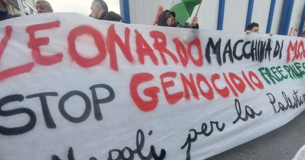 Un sit-in di protesta è in corso davanti alla sede della “Leonardo" a Bacoli. A bloccare l'ingresso dei mezzi alla fabbrica gli attivisti della “Rete Napoli della Palestina", della “Rete studentesca per la Palestina" e del sindacato Si Cobas che hanno aperto striscioni e scritto con vernice sui cancelli frasi contro la Leonardo e contro l'invio di armi ad Israele.