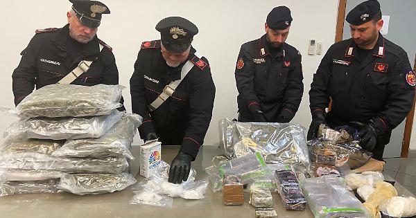 Si parte dall'arresto di due spacciatori, padre e figlio, nella cui abitazione i militari hanno rinvenuto 121 panetti di hashish, oltre 12 chili di stupefacente con il logo "Narcos" impresso sulle confezioni. E ancora più di due chili di marijuana, 350 dosi di cocaina e 5 pietre della stessa sostanza ma ancora da tagliare per complessivi 590 grammi. Ancora cocaina, già pronta per l'uso: 2 gli involucri per totali 552 grammi. In manette anche un 60enne.