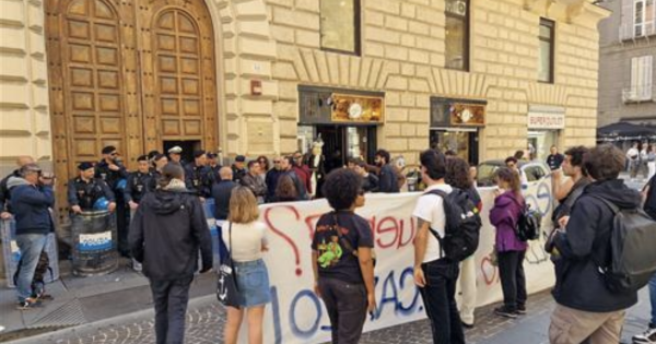NAPOLI. Alcuni attivisti che ieri hanno protestato in occasione della celebrazione dei 75 anni della Nato al Teatro San Carlo si sono avvicinati questa mattina alla sede del Consiglio comunale di Napoli tentando di entrare nel palazzo di via Verdi, ma le forze dell'ordine li hanno bloccati all'ingresso chiudendo il portone. La richiesta è una presa di posizione del sindaco Gaetano Manfredi e del Consiglio comunale perché «ieri - la tesi dei manifestanti - i cittadini e le cittadine che rappresentano hanno subito una violenza ingiustificata ed ingiustificabile». Gli attivisti hanno intonato cori contro Manfredi, dicendo «abusivo» e «hai le mani sporche di sangue», e ora, che restano all'esterno del palazzo di Via Verdi esponendo uno striscione, assicurano: «Non andremo via da qui fino a quando non ci sarà concesso un incontro per conferire con chi sta colpevolmente tacendo davanti alla violenza delle forze di polizia su giovani e giovanissimi».