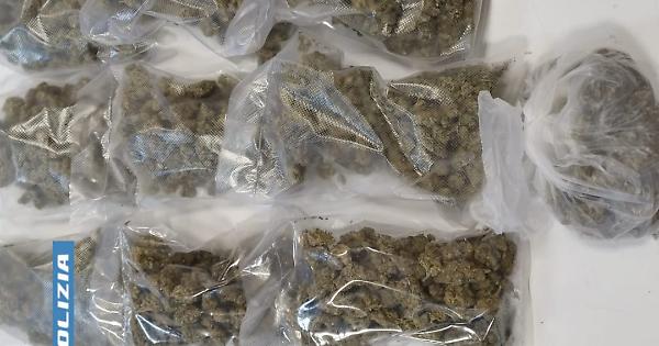 NAPOLI. Nel pomeriggio di ieri, gli agenti della Squadra Mobile hanno controllato un uomo che camminava a piedi in via San Giacomo che è stato trovato in possesso di una busta con 10 confezioni contenenti complessivamente circa 1100 grammi di marijuana, un pezzetto di hahsish del peso di circa 10 grammi, celato all’interno di un pacchetto di sigarette, e 200 euro in banconote di diverso taglio rinvenute accartocciate nelle tasche dei pantaloni. Un 27enne di Formia, con precedenti di polizia, anche specifici, è stato tratto in arresto per detenzione illecita di sostanze stupefacenti.