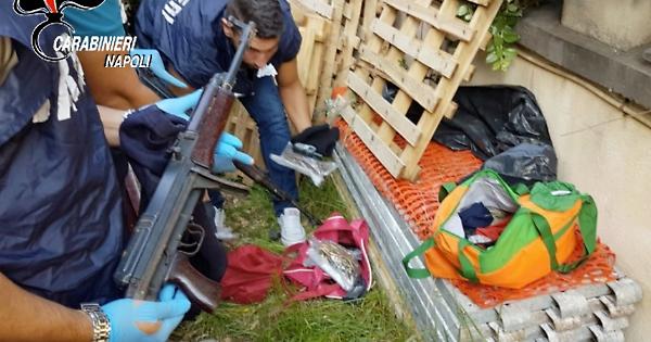 CASTELLAMMARE. Ieri un agguato nel rione Santa Caterina, oggi il ritrovamento di un arsenale a Castellammare. In un rudere nascosto dalla vegetazione, al rione Moscarella, i carabinieri dell’aliquota operativa della compagnia di Castellammare di Stabia hanno rinvenuto 2 borsoni: all’interno vi erano custoditi 2 kalashnikov, 8 caricatori pieni, 6 pistole semiautomatiche con matricola abrasa e cariche, 2 revolver con matricola abrasa e carichi, 514 cartucce di vari calibri, un passamontagna, 3 radio portatili, oltre a 840 g. di hashish, 50 g. di sostanza da taglio e 4 bilancini.