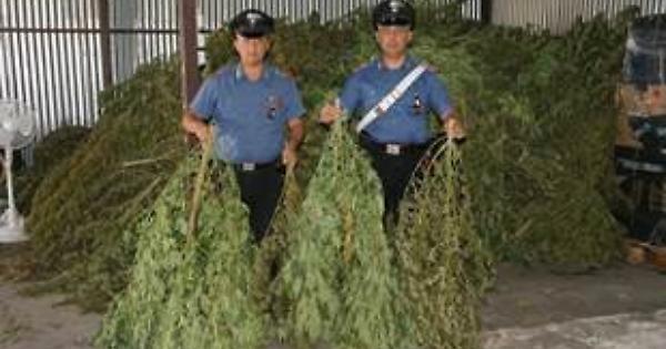 I militari dell’Arma, li hanno sorpresi mentre erano intenti ad essiccare, all’interno di un capannone in lamiera delle dimensioni di 300 mq circa, una piantagione di marijuana costituita da 825 piante di altezza superiore ai metri due, per un peso complessivo di 1.340 kg circa.