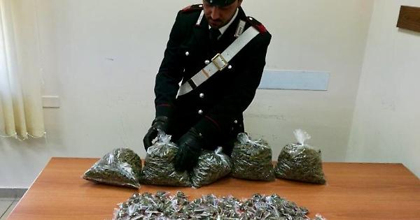 VILALRICCA. I carabinieri della stazione di Villaricca hanno arrestato in flagranza A.e G.D., 56 e 31 anni, padre e figlio conviventi e già noti alle forze dell'ordine. Durante perquisizione domiciliare i 2 sono stati trovati in possesso di 725 grammi di marijuana contenuti in 3 buste in cellophane e di una piantina di cannabis indica di circa 30 centimetri, oltre a materiale vario per il confezionamento e a 325 euro in denaro contante. Gli arrestati sono stati portati nella casa circondariale di Poggioreale.