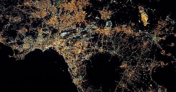NAPOLI. Una galassia di luci intorno al Vesuvio: è Napoli di notte, fotografata dalla Stazione Spaziale Internazionale (Iss), a circa 400 chilometri di quota. L’immagine è stata scelta dal Johnson Space Center della Nasa tra i 17 scatti più significativi della Terra osservata dallo spazio. Tra le zone scure dovute alle zone agricole, c’è una macchia di un giallo intenso, particolarmente luminosa: è il Cis di Nola, il polo per il commercio all’ingrosso leader in Europa. L’immagine notturna segnala con le sue luci anche lo sviluppo del territorio alle pendici del Vesuvio. nella collezione anche l’aurora boreale sui cieli del Canada, il rosso di un’alba infuocata sulle Filippine e al bianco dei ghiacci artici della Russia.