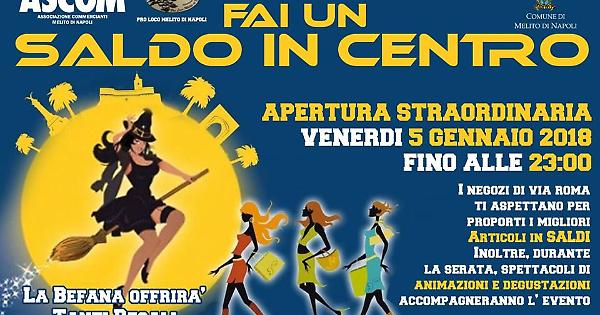 MELITO. Nuova iniziativa a sostegno del commercio organizzata dall’Ascom. Nella serata di venerdì 5 gennaio gli esercizi commerciali di via Roma sia alimentari che non alimentari, in concomitanza dell’avvio dei saldi in Campania, rimarranno aperti sino alle ore 23. L’evento, organizzato con il patrocinio morale del Comune di Melito di Napoli, ripercorre le orme di quello dello scorso 23 dicembre quando numerose famiglie accorsero nella principale strada dello shopping cittadino per effettuare gli ultimi acquisti di Natale. Durante la serata del 5 gennaio, che vede in prima linea l’associazione che cura gli interessi degli esercenti guidata dal presidente Antonio Papa, ci saranno degustazioni di prodotti tipici locali e spettacoli di animazione. In più, la Befana regalerà in strada doni a tutti i bambini. «Iniziative del genere – il commento di Papa – danno impulso al commercio locale. D’altronde i saldi sono oramai alle porte e ci pare necessario sostenere i vari negozi del territorio. Aspettiamo tutti i cittadini in via Roma la sera del 5 gennaio».
