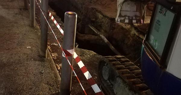 Cede parte di via Trencia. Tecnici al lavoro diverse ore per ripristinare il flusso idrico. In serata è tornata l'erogazione. Ma la strada resta chiusa al traffico