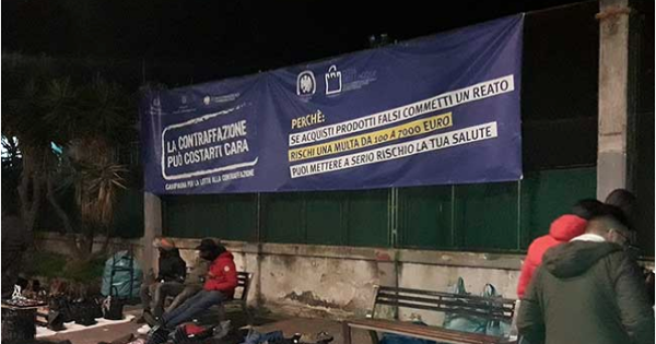 Nelle scorse settimane, mani ignote strapparono uno striscione che faceva appello alla cittadinanza a non comprare prodotti contraffatti, anche per tutelare la propria incolumità da merce scadente e spesso nociva per la salute. Lo striscione era stato affisso dai commercianti stabiesi che lessero quel gesto come un atto intimidatorio dalle organizzazioni di "Vu' cumprà" che hanno occupato ampie aree cittadine con tappeti sui quali - soprattutto nei giorni di festa - espongono la loro mercanzia priva di fattura e venduta senza scontrino. Nonostante tutto, i commercianti dell'Ascom di Castellammare di Stabia non demordono. ''L'impegno per il 2018 e per gli anni a venire - prosegue De Meo - è quello di far appello a tutte le forze attive della società per contrastare, combattere e debellare ogni forma di abusivismo. Contestualmente verrà svolta un'attività di sensibilizzazione e di informazione dei cittadini per metterli in guardia della pericolosità degli indumenti e degli articoli indossati, o a contatto con la pelle creati con l'utilizzo di sostanze tossiche e/o allergeniche che minacciano in maniera grave la salute''. Infine, l'Ascom invita il Sindaco, l'Amministrazione Comunale, tutte le Associazioni e i Cittadini che credono nella legalità e avversano ogni forma di vandalismo, a presenziare all'installazione del nuovo striscione contro la contraffazione e l'abusivismo commerciale, che verrà nuovamente apposto nel medesimo luogo in via Bonito, dall'Associazione Commercianti Stabiesi, il giorno 23 gennaio 2018 alle ore 15.30.