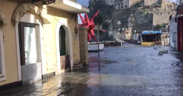 Acqua alta stamattina a Ischia Ponte, come si vede nel video girato dal nostro lettore William Bevivino. Al di là dei disagi per residenti e commercianti, il fenomeno continua ad affascinare i turisti che anche nei mesi invernali scelgono l'isola verde. La suggestione è garantita.