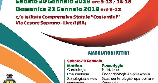 LIVERI. Sarà un weekend all’insegna della prevenzione quello che prenderà il via domani e che si concluderà domenica. Col “Campus della salute” ci saranno, infatti, visite mediche gratuite presso gli ambulatori allestiti nelle aule dell’istituto comprensivo statale “Costantini” di via Cesare Soprano a Liveri. Dalle 9 di domani, sabato 20 gennaio, fino alle 13 e poi dalle 14 alle18 sarà possibile effettuare numerose visite specialistiche ed effettuare ecografie al seno ed alla tiroide con i medici di Campus salute onlus. Domenica 21, invece, aule aperte dalle 9 alle 13. «Con questa iniziativa straordinaria, oltre ad offrire un ottimo servizio ai cittadini, - spiega il sindaco di Liveri, Raffaele Coppola - vogliamo sancire e ribadire un fondamentale diritto costituzionale Il diritto alla salute di tutti i cittadini, che ingiustamente per troppo tempo é stato negato o quanto meno non garantito a tutti».