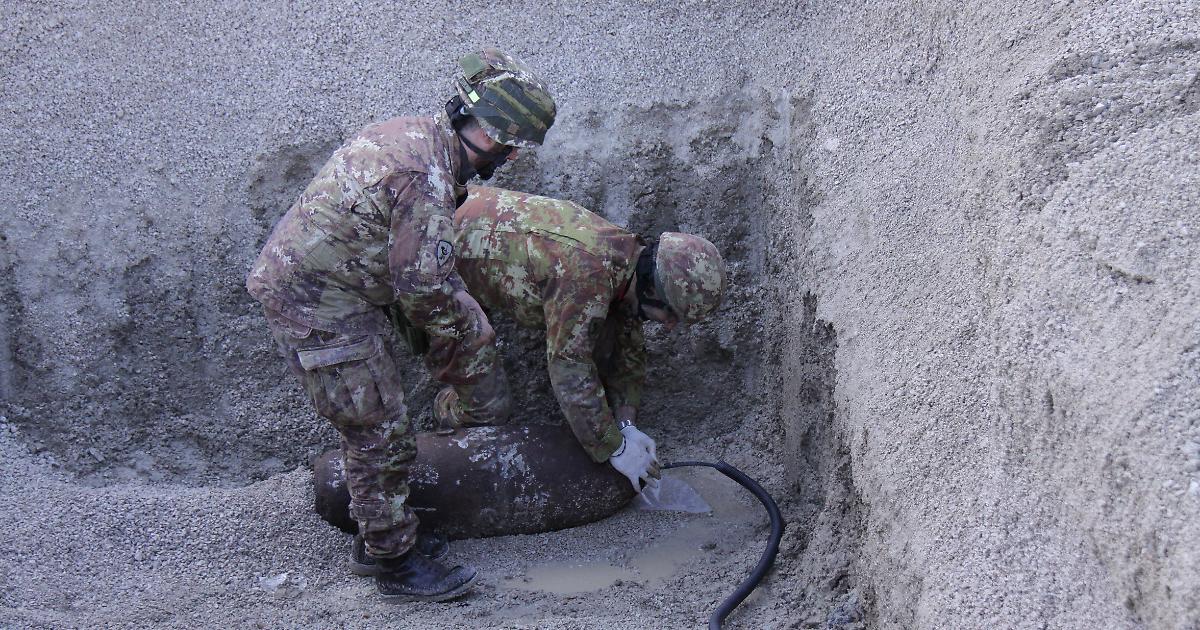 TORRE ANNUNZIATA. Fu sganciata circa 70 anni fa da un aereo inglese durante la seconda Guerra mondiale. Ed è rimasta inesplosa con il suo carico di circa 70 kg di alto esplosivo. La bomba rimossa ieri dal cantiere del Maximall Pompeii è stata disinnescata dagli artificieri del 21° Reggimento Genio Guastatori, unità della Brigata Bersaglieri “Garibaldi”. L'ordigno bellico è stato occasionalmente rinvenuto nel corso dei lavori per la costruzione del centro commerciale: pesava 500 libbre ed era in buone condizioni. La bomba, priva di parti meccaniche ed organi sensibili, è stata dapprima messa in sicurezza e successivamente trasportata in cava nel comune di Casamarciano (NA), dove all’interno di un “fornello” costruito con opere di scavo già predisposte, e’ stata distrutta in alto ordine con un brillamento controllato.